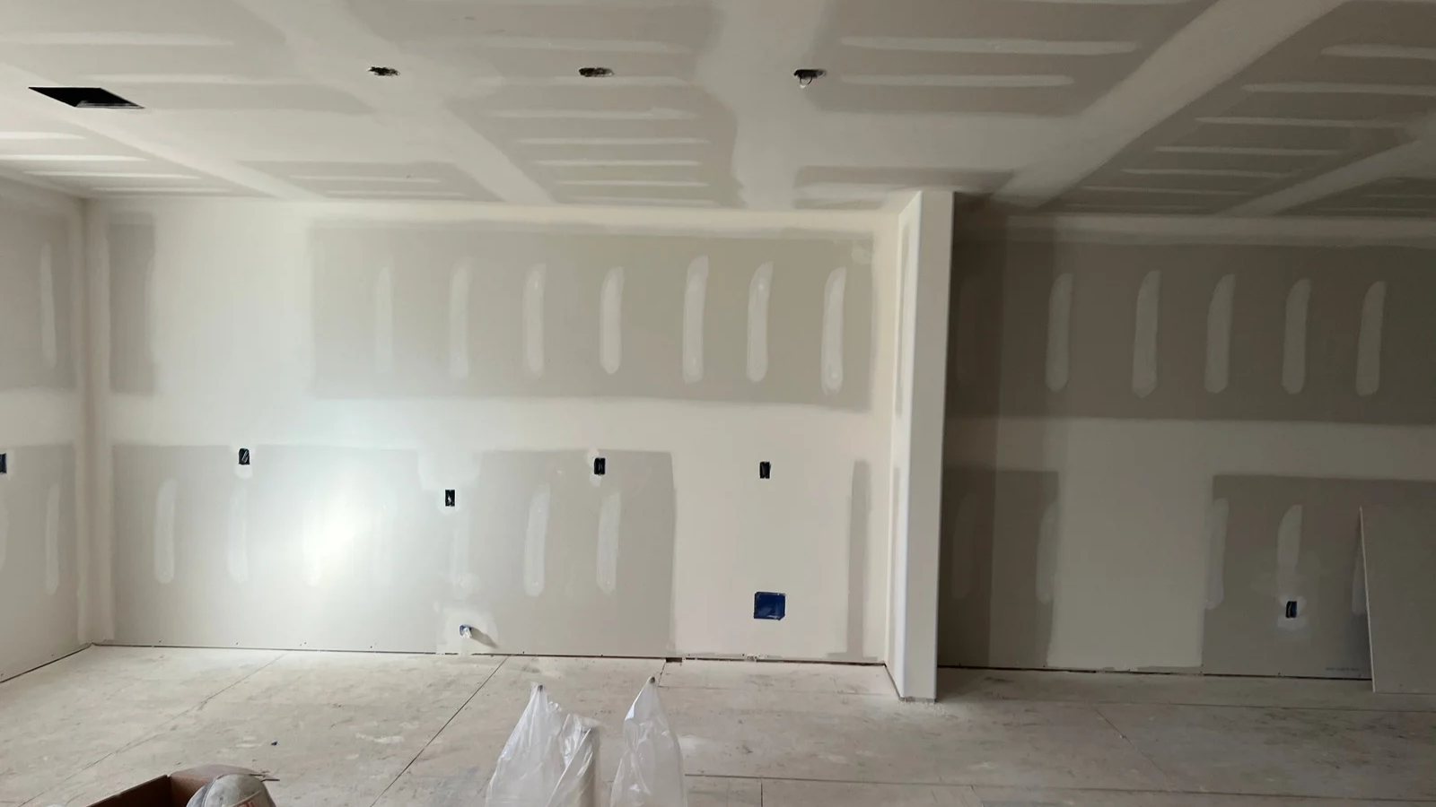 AFTER GLULAM INSTALL, FOAM INSULATION, NEW SHEETROCK